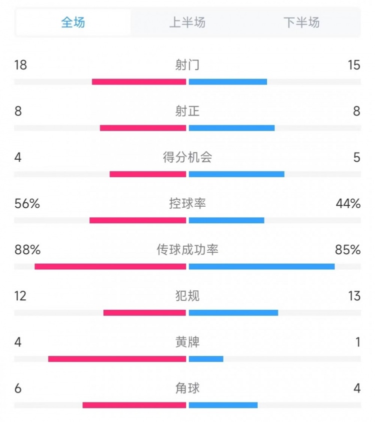 發(fā)布時間:2025年01月07日 05:51點擊:欄目:足球新聞 1月7日訊 在北京時間今天凌晨進行的意大利超級杯決賽中,米蘭3-2逆轉(zhuǎn)國米,捧起冠軍獎杯。國米vs米蘭全場數(shù)據(jù):射門——18比15射正——8比8得分機會——4比5控球率——56%比44%傳球成功率——88%比85%犯規(guī)——12比13黃牌——4比1角球——6比4 除特別注明外,本站所有內(nèi)容均為九球直播整理排版,轉(zhuǎn)載請注明出處:國米vs米蘭全場數(shù)據(jù):射門18比15、射正8比8、控球率56%比44% 本文標簽: 足球 意甲 AC米蘭 國際米蘭
