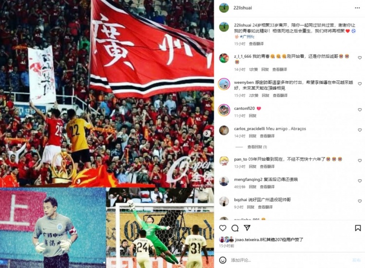 1月7日訊 昨天,中國足協(xié)公布2025賽季準(zhǔn)入名單,廣州隊(duì)未在列。隨后,廣州隊(duì)官方宣布,無法繼續(xù)征戰(zhàn)中國足球職業(yè)聯(lián)賽。前廣州隊(duì)門將李帥發(fā)文告別球隊(duì),并寫道:24歲相聚33歲離開,陪你一起同過甘共過苦,謝謝你讓我的青春如此精彩!相信死地之后會重生,我們終將再相聚。