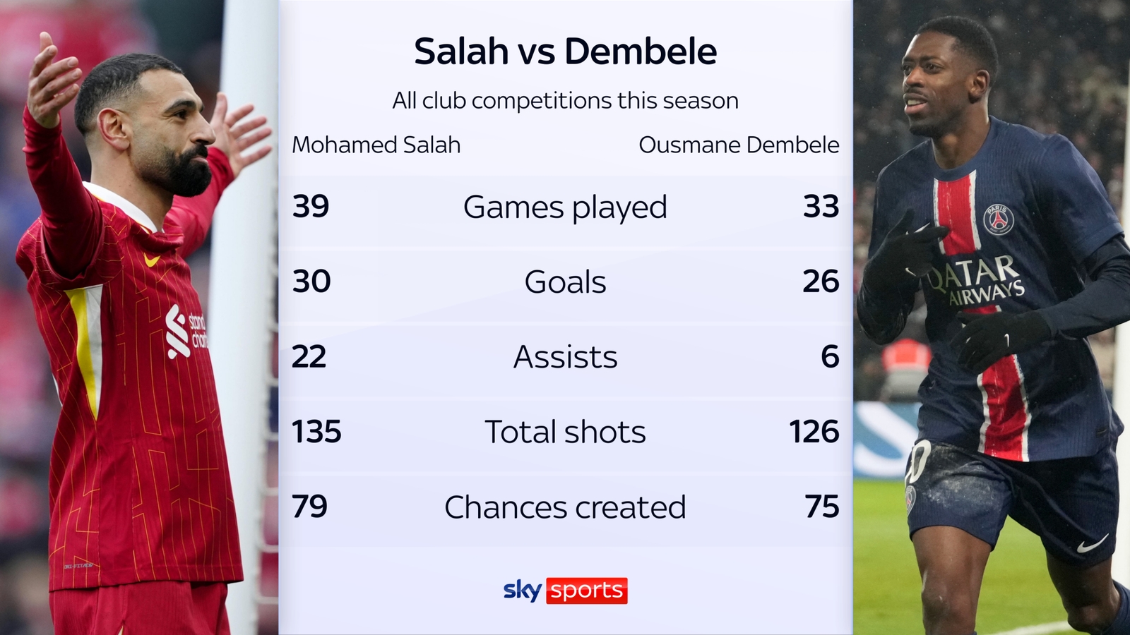 薩拉赫與登貝萊本賽季數(shù)據(jù)對比