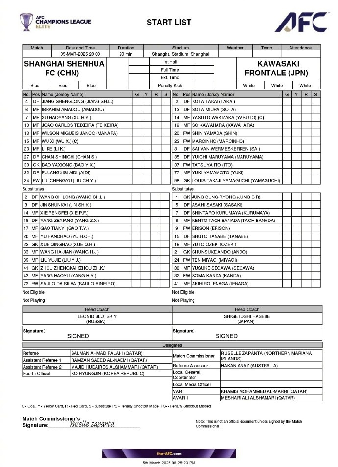 發(fā)布時(shí)間:2025年03月05日 18:50點(diǎn)擊:欄目:足球新聞 2024/25亞冠精英聯(lián)賽1/8決賽首回合 上海申花vs川崎前鋒 首發(fā)名單 ??? 除特別注明外,本站所有內(nèi)容均為九球直播整理排版,轉(zhuǎn)載請(qǐng)注明出處:亞冠精英聯(lián)賽1/8決賽首回合 上海申花vs川崎前鋒首發(fā)名單 ??? 本文標(biāo)簽: 足球 中超 中國足球 上海申花 亞冠精英