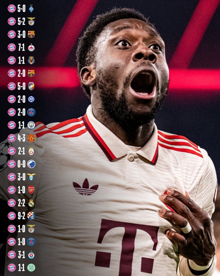 拜仁自2021年4月主場2-3不敵巴黎之后,在歐冠主場已經(jīng)4年不敗。期間共計(jì)21戰(zhàn)16勝5平,也是當(dāng)前歐冠各隊(duì)主場最長連續(xù)不敗紀(jì)錄。