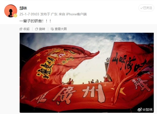 廣州隊傳奇郜林發(fā)文:“一輩子的驕傲!??!”