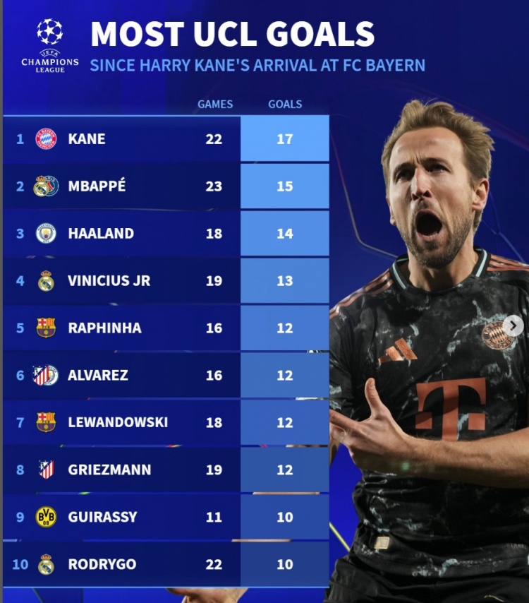 除特別注明外,本站所有內(nèi)容均為九球直播整理排版,轉(zhuǎn)載請(qǐng)注明出處:近2賽季歐冠進(jìn)球榜:凱恩17球居首,姆巴佩15球、哈蘭德14球