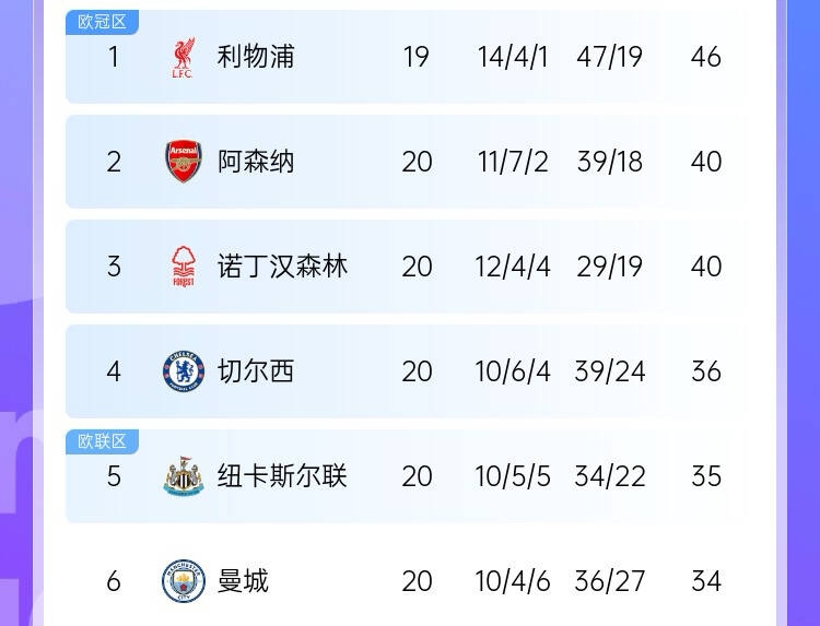 發(fā)布時間:2025年01月07日 12:50點擊:欄目:足球新聞 01月07日訊 英超第20輪,利物浦、阿森納、切爾西紛紛戰(zhàn)平,前四僅諾丁漢森林全取三分。諾丁漢森林豪取英超6連勝,目前積分追平第二的阿森納,領(lǐng)先第四的切爾西4分,領(lǐng)先第五的紐卡5分,很有希望取得歐冠席位。諾丁漢森林曾衛(wèi)冕歐冠(78/79、79/80),但80/81賽季首輪出局,之后便闊別歐冠舞臺44年之久。 除特別注明外,本站所有內(nèi)容均為九球直播整理排版,轉(zhuǎn)載請注明出處:衛(wèi)冕歐冠后闊別44年!紅軍槍手藍軍剎車 森林狂踩油門領(lǐng)先第五5分 本文標簽: 足球 英超 話題 諾丁漢森林
