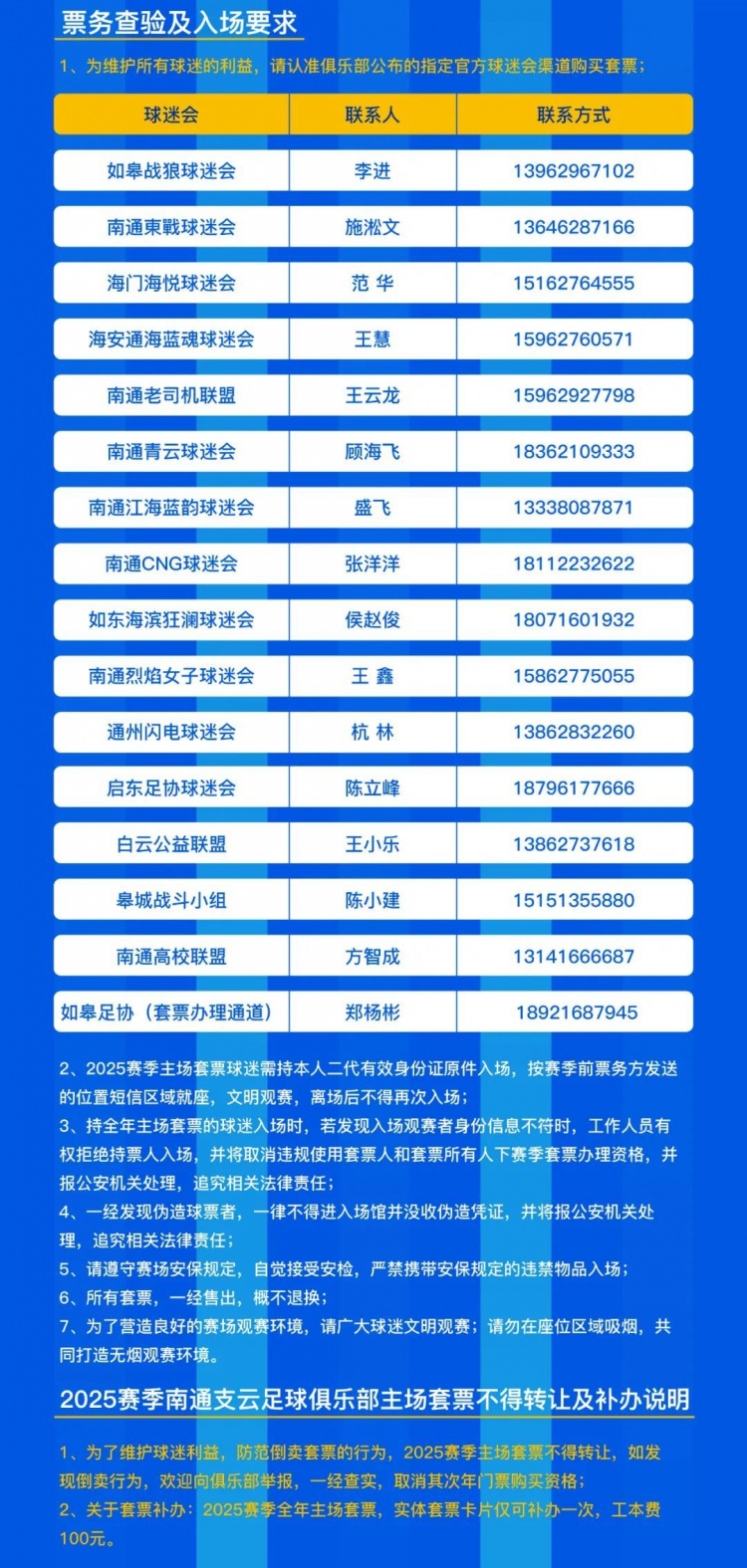 ?五、2025賽季南通支云足球俱樂部主場套票不得轉讓及補辦說明: