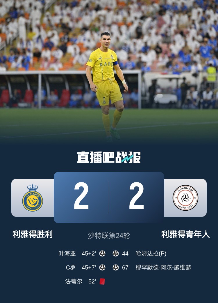 發(fā)布時間:2025年03月08日 07:50點擊:欄目:足球新聞 【戰(zhàn)報新聞】C羅破門+生涯926球!十人勝利2-2青年人距榜首10分 勝利6場僅1勝C羅破門,十人勝利主場2-2戰(zhàn)平青年人。勝利各賽事近6場僅1勝,距榜首吉達聯(lián)合10分。傳奇永不褪色! 除特別注明外,本站所有內(nèi)容均為九球直播整理排版,轉(zhuǎn)載請注明出處:早報:C羅破門勝利戰(zhàn)平落后榜首10分 梅努不想和曼聯(lián)續(xù)約 本文標簽: 足球 英超 西甲 曼聯(lián) 意甲 利雅得勝利 C羅 德甲 拜仁慕尼黑 皇家馬德里 切爾西 利物浦 AC米蘭 曼城 皇家貝蒂斯
