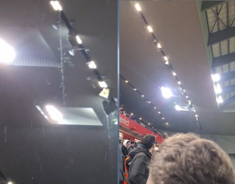 1月7日訊 TA報(bào)道,利物浦方面將對(duì)與曼聯(lián)比賽期間球場(chǎng)漏水問題展開調(diào)查。社交媒體上流傳的視頻顯示,部分看臺(tái)頂部出現(xiàn)漏水現(xiàn)象。