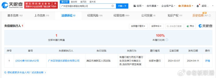 - 廣州隊(duì)無(wú)緣準(zhǔn)入&解散!廣州隊(duì)關(guān)聯(lián)公司去年被列為失信被執(zhí)行人