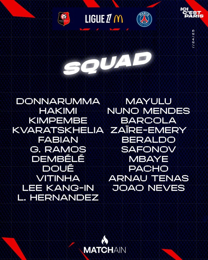 3月8日訊 北京時間明天凌晨0點(diǎn),巴黎圣日耳曼將在法甲第25輪客場挑戰(zhàn)雷恩,球隊(duì)今天公布了大名單。