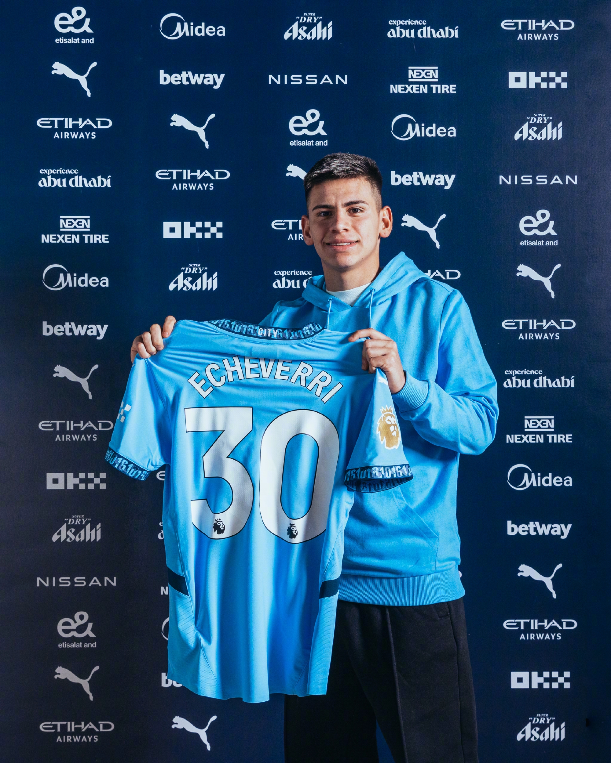 曼城在上個(gè)月宣布19歲阿根廷中場埃切維里正式加盟球隊(duì),他將身披30號(hào)球衣。