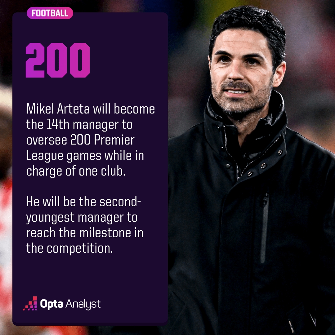 而本周末的對(duì)話也恰巧是阿爾特塔執(zhí)教的一個(gè)重要里程碑——他率領(lǐng)阿森納出戰(zhàn)200場(chǎng)英超。這也將使他(42歲348天)成為繼羅伯托-馬丁內(nèi)斯(41歲111天)之后,第二年輕達(dá)到這一里程碑的主教練。