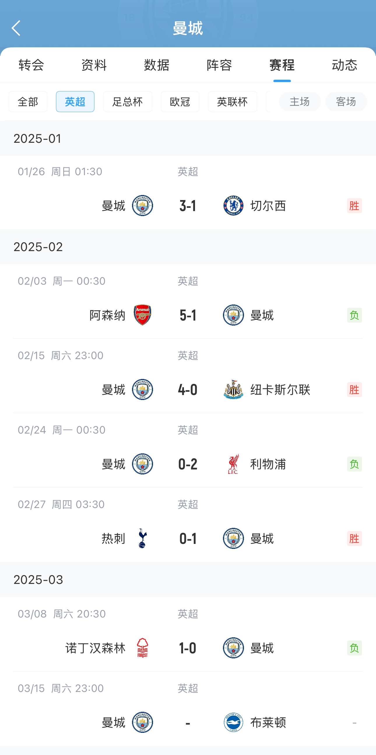 發(fā)布時(shí)間:2025年03月08日 22:50點(diǎn)擊:欄目:足球新聞 除特別注明外,本站所有內(nèi)容均為九球直播整理排版,轉(zhuǎn)載請(qǐng)注明出處:就是不能連勝曼城近6場(chǎng)聯(lián)賽:贏輸贏輸贏輸 本文標(biāo)簽: 足球 英超 曼城