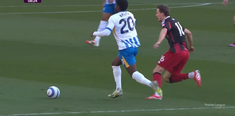 布萊頓出場陣容:1-維爾布魯根、41-辛謝爾伍德、29-范赫克、4-韋伯斯特、30-埃斯圖皮尼安、20-巴萊巴、26-阿亞里、17-明特、14-魯特爾、22-三笘薰、9-若昂-佩德羅