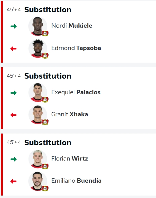 發(fā)布時(shí)間:2025年03月08日 23:50點(diǎn)擊:欄目:足球新聞 03月08日訊 德甲第25輪,勒沃庫(kù)森vs不萊梅。比賽下半場(chǎng),勒沃庫(kù)森連換三人,維爾茨、帕拉西奧斯、穆基勒出場(chǎng),換下布恩迪亞、扎卡以及塔普索巴。 除特別注明外,本站所有內(nèi)容均為九球直播整理排版,轉(zhuǎn)載請(qǐng)注明出處:動(dòng)真格了!落后的藥廠半場(chǎng)連換三人維爾茨登場(chǎng),下周還要踢拜仁 本文標(biāo)簽: 足球 德甲 拜仁慕尼黑 勒沃庫(kù)森 不萊梅
