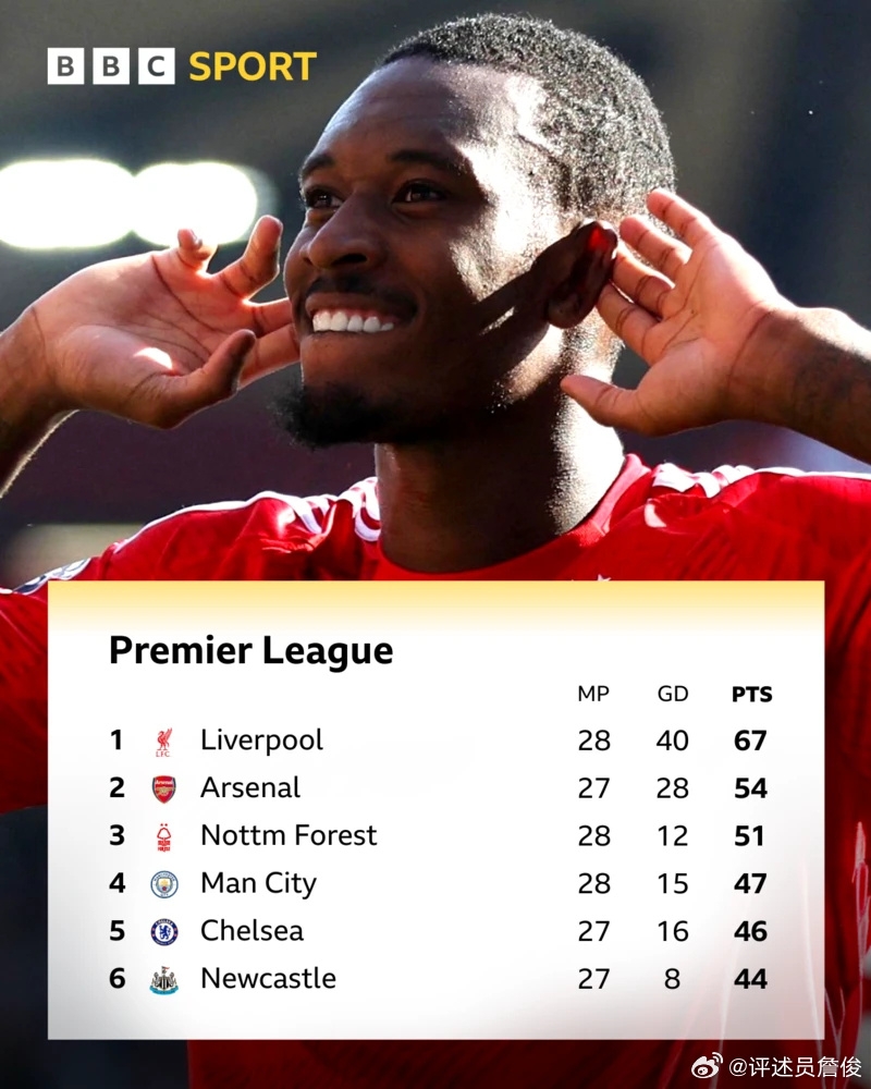 諾丁漢森林贏得很有說服力,整體的攻防很有彈性,回收迅速反擊堅決。努諾-桑托把一支上賽季排名第17的隊伍帶到第三,知人善用戰(zhàn)術切合實際,真有能名帥也!他們本季近30年首次英超主場勝曼城,俱樂部歷史上首次單季客場先后擊敗利物浦曼聯(lián),配得上下賽季重返歐冠!