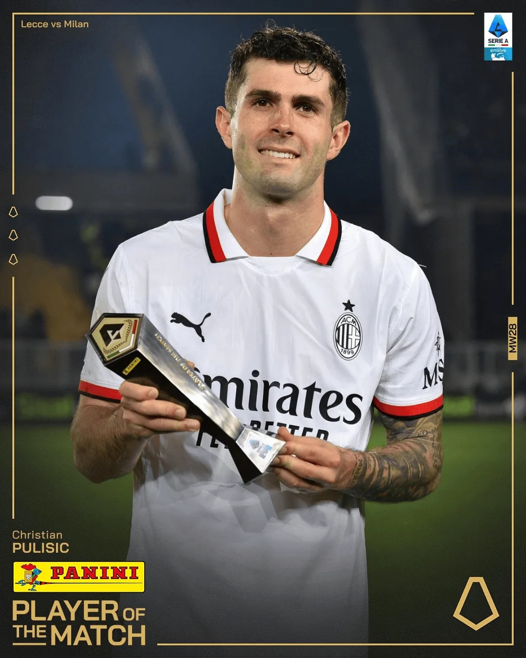 本場(chǎng)比賽米蘭一度兩球落后,紅黑軍團(tuán)在下半場(chǎng)發(fā)起反擊,先是在第68分鐘造成萊切后衛(wèi)加略烏龍,然后普利西奇在第73分鐘和第81分鐘連入兩球,幫助米蘭成功完成逆轉(zhuǎn)。
