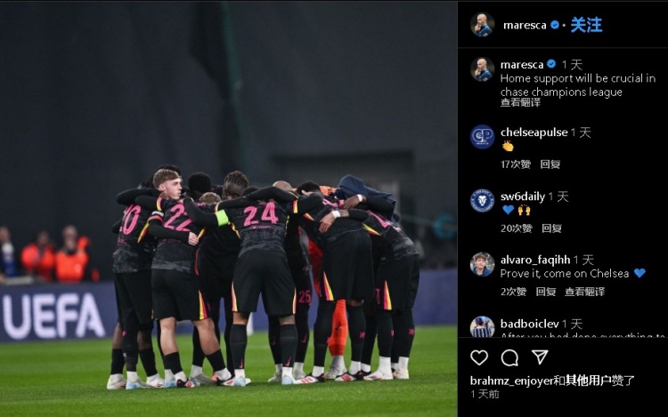 馬雷斯卡社媒寫道:主場(chǎng)球迷的支持,是我們爭(zhēng)奪歐冠資格的動(dòng)力?。ㄓ⒊八模?/p>