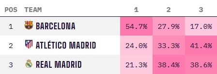 巴薩:54.7%;馬競:24%;皇馬21.3%