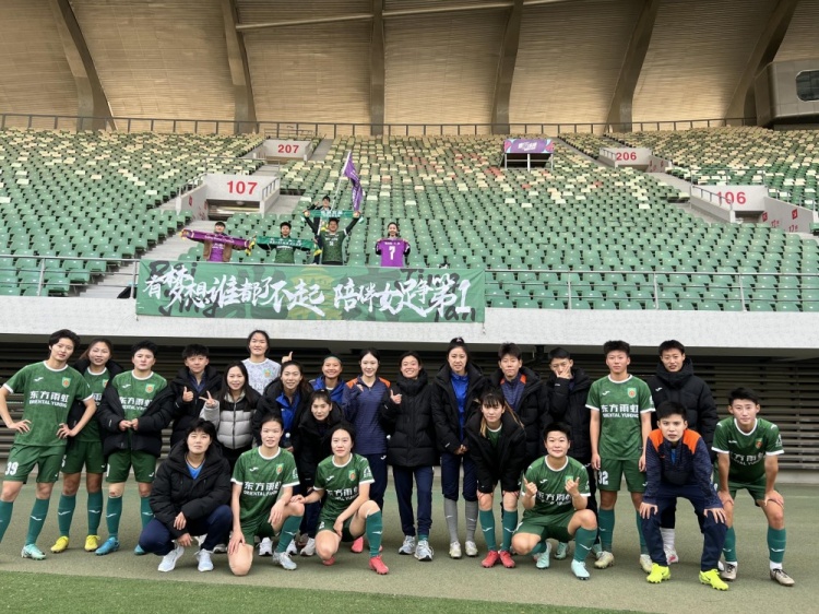與5名球迷一起從北京來到延安的,還有一面印有“有夢想誰都了不起,與女足一起爭第一”的橫幅。比賽結(jié)束后,北京女足全體隊員來到5名球迷所在的看臺下致謝,并合影留念?!埃ㄋ麄儯┱媸遣蝗菀装?,非常感謝他們的支持!”北京女足主帥于允表示,能在客場聽到助威聲,讓全隊都十分感動。