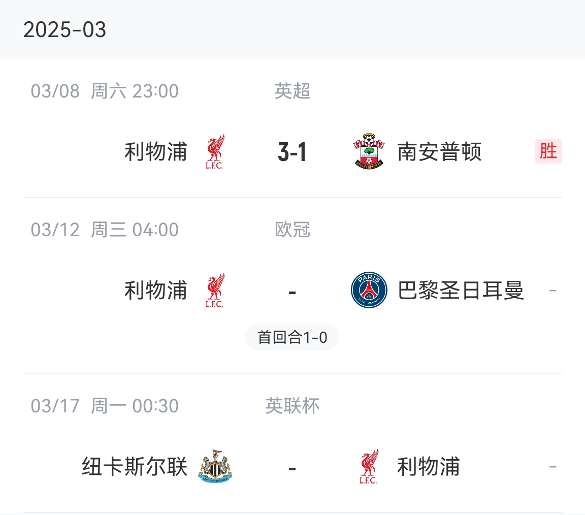 最終球隊(duì)3比1逆轉(zhuǎn)南安普頓,接下來球隊(duì)將在歐冠主場迎戰(zhàn)巴黎(首回合客場1-0),下周一凌晨,球隊(duì)將迎來與紐卡的英聯(lián)杯決賽,斯洛特將沖擊執(zhí)教球隊(duì)的首座獎杯。