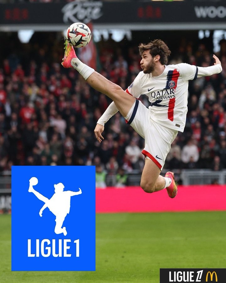 賽后,法甲官推曬出克瓦拉茨赫利亞高抬腿停球的照片,并將這個(gè)動(dòng)作P成了聯(lián)賽Logo。