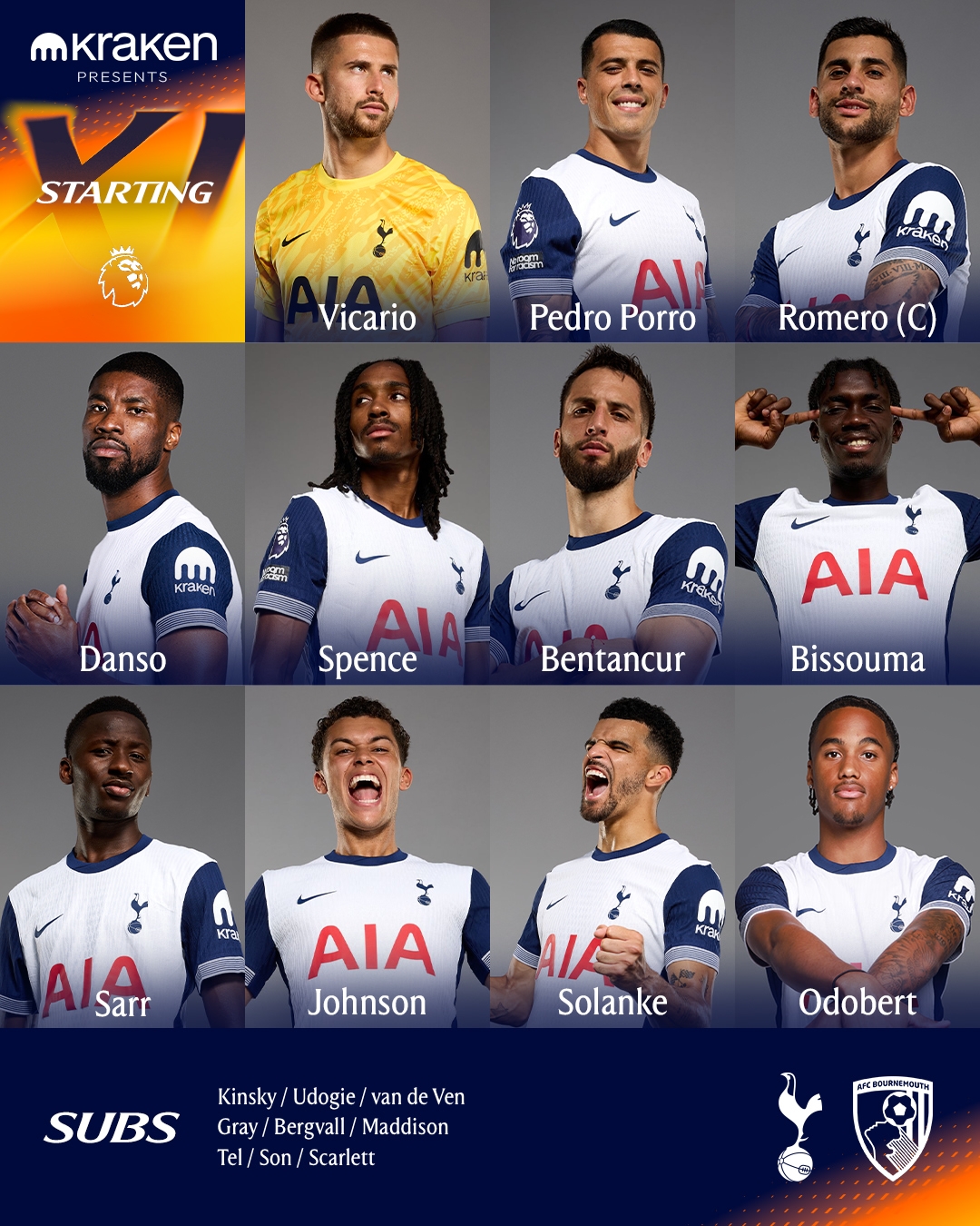 03月09日訊 北京時(shí)間22點(diǎn),英超第28輪,熱刺主場(chǎng)迎戰(zhàn)伯恩茅斯,賽前雙方公布首發(fā)。