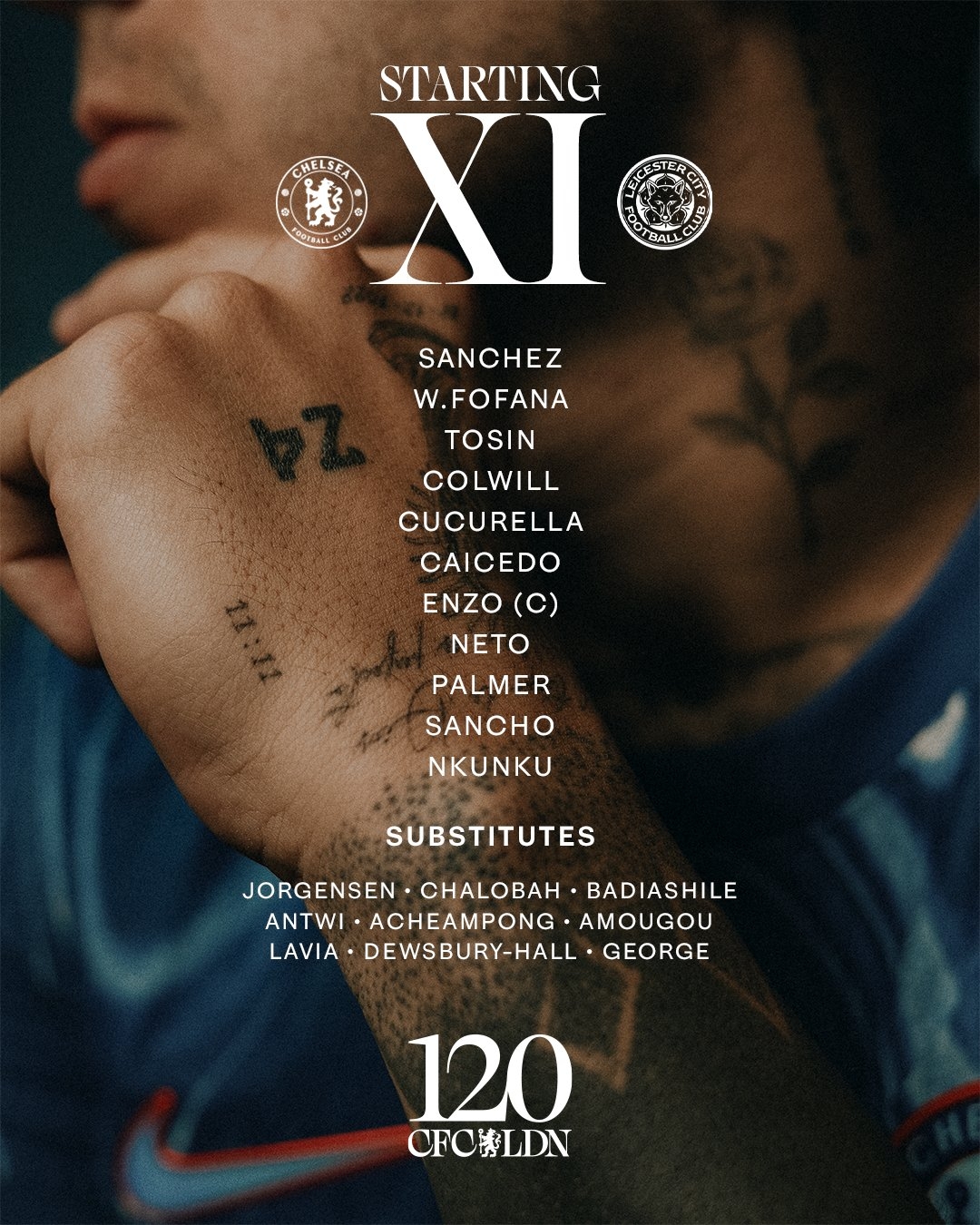 切爾西首發(fā):1-羅伯特-桑切斯、29-韋斯利-福法納、4-阿達(dá)拉比奧尤、6-科爾維爾、3-庫庫雷利亞、25-凱塞多、8-恩佐、20-帕爾默、19-桑喬、7-佩德羅-內(nèi)托、18-恩昆庫