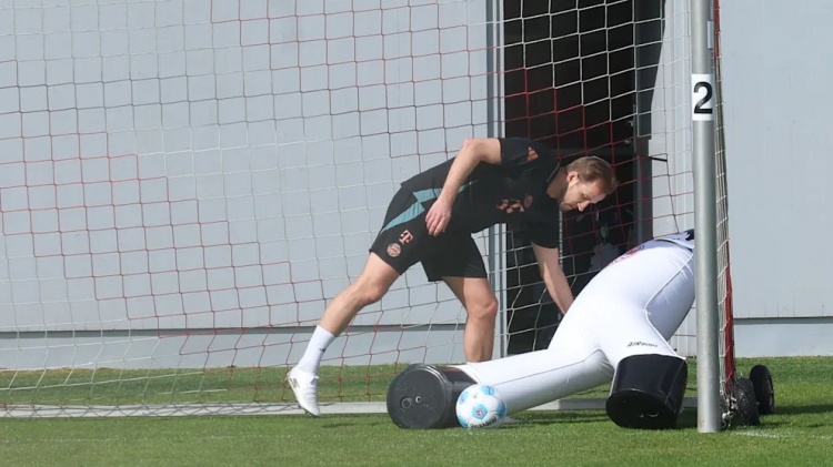 該媒體指出,拜仁大部分球員都選擇留在室內(nèi)進(jìn)行恢復(fù)性訓(xùn)練,但凱恩和奧利塞選擇來到訓(xùn)練場加練射門。盡管沒有門將球員協(xié)助,但他們借用了兩個充氣玩偶在球門位置鎮(zhèn)守。