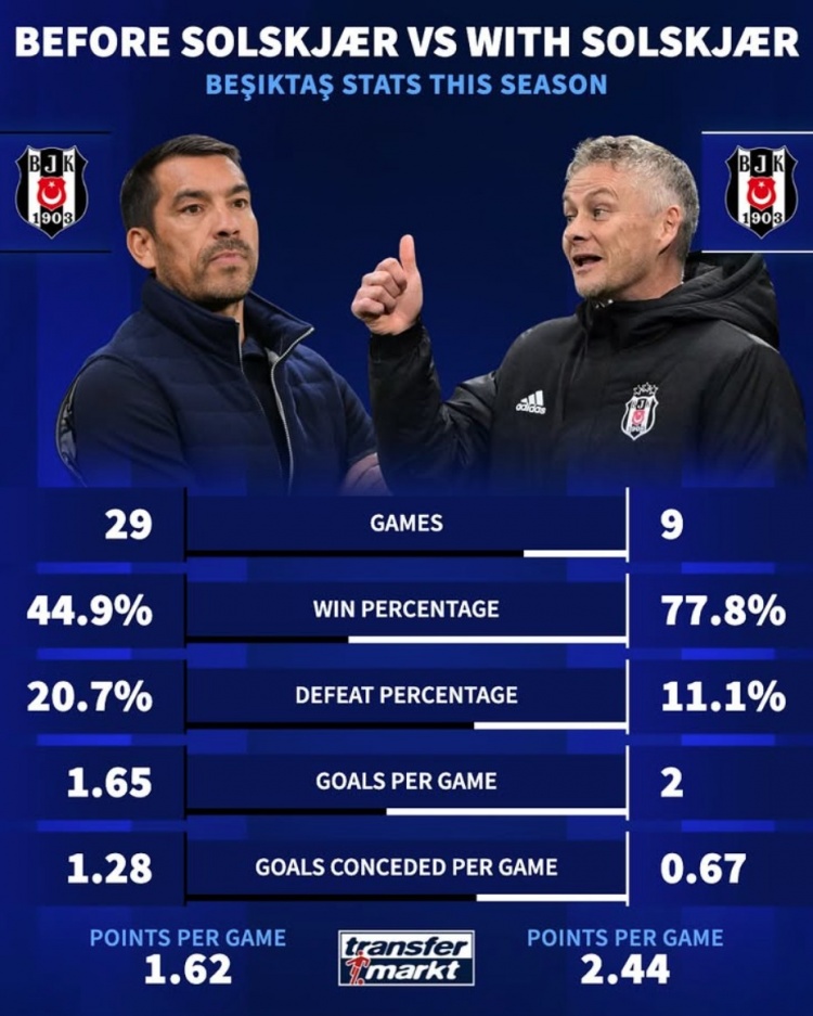 3月10日訊 貝西克塔斯在上輪土超2-0力克開(kāi)賽利體育,延續(xù)了索帥上任后的出色表現(xiàn)。《轉(zhuǎn)會(huì)市場(chǎng)》也對(duì)比了貝西克塔斯在這位前曼聯(lián)主帥上任前后的關(guān)鍵數(shù)據(jù)。