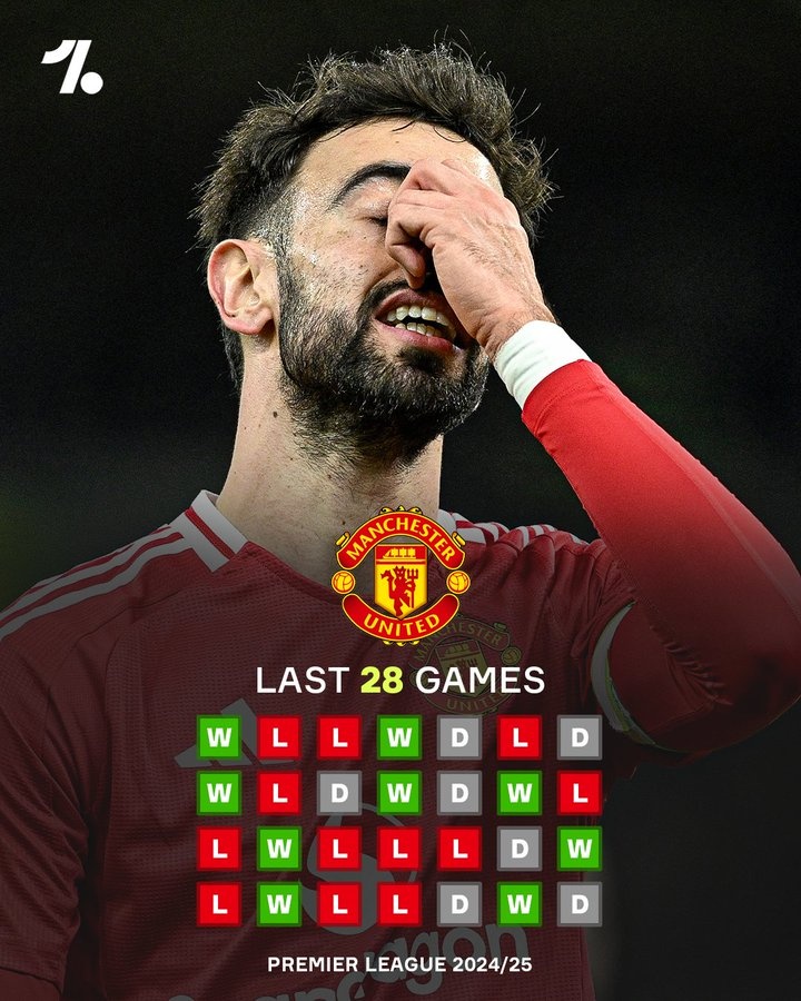 OneFootball統(tǒng)計表明,曼聯(lián)本賽季還沒有在英超取得過兩連勝。