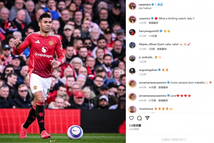 發(fā)布時間:2025年03月10日 05:50點擊:欄目:足球新聞 3月10日訊 曼聯(lián)在本輪英超焦點戰(zhàn)主場1-1戰(zhàn)平阿森納,卡塞米羅在本場比賽表現(xiàn)搶眼。數(shù)據(jù)統(tǒng)計顯示,他在本場16次對抗12次成功,還貢獻了2次解圍、2次封堵和9次搶斷。卡塞米羅也在賽后通過社媒曬出自己的比賽照,并感嘆:“小伙子們,多么激動人心的一場比賽!”馬奎爾也現(xiàn)身評論區(qū)并留下代表鼓勵的鼓掌表情 除特別注明外,本站所有內(nèi)容均為九球直播整理排版,轉(zhuǎn)載請注明出處:單場9搶斷!卡塞米羅社媒感嘆:多么激動人心的一場比賽! 本文標簽: 足球 英超 曼聯(lián) 阿森納
