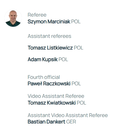 助理裁判:托馬斯-利斯特凱維奇(波蘭)、亞當(dāng)-庫普西克(波蘭)