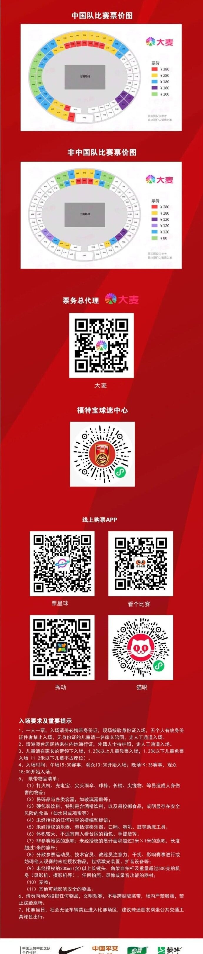今日(3月10日)17點(diǎn)起賽事門票正式開售!售票平臺包括福特寶球迷中心微信小程序、大麥網(wǎng)、票星球、看個比賽、秀動、貓眼等平臺,具體賽程及詳細(xì)票務(wù)信息如下。