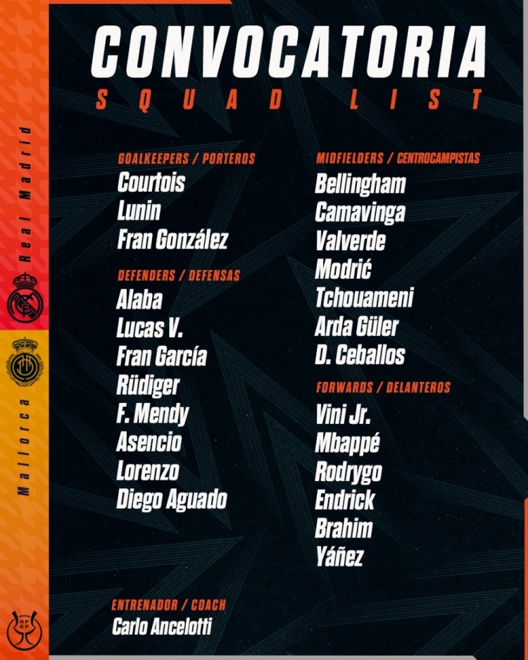 除特別注明外,本站所有內容均為九球直播整理排版,轉載請注明出處:皇馬西超杯大名單:阿拉巴回歸,姆巴佩、維尼修斯、貝林厄姆在列