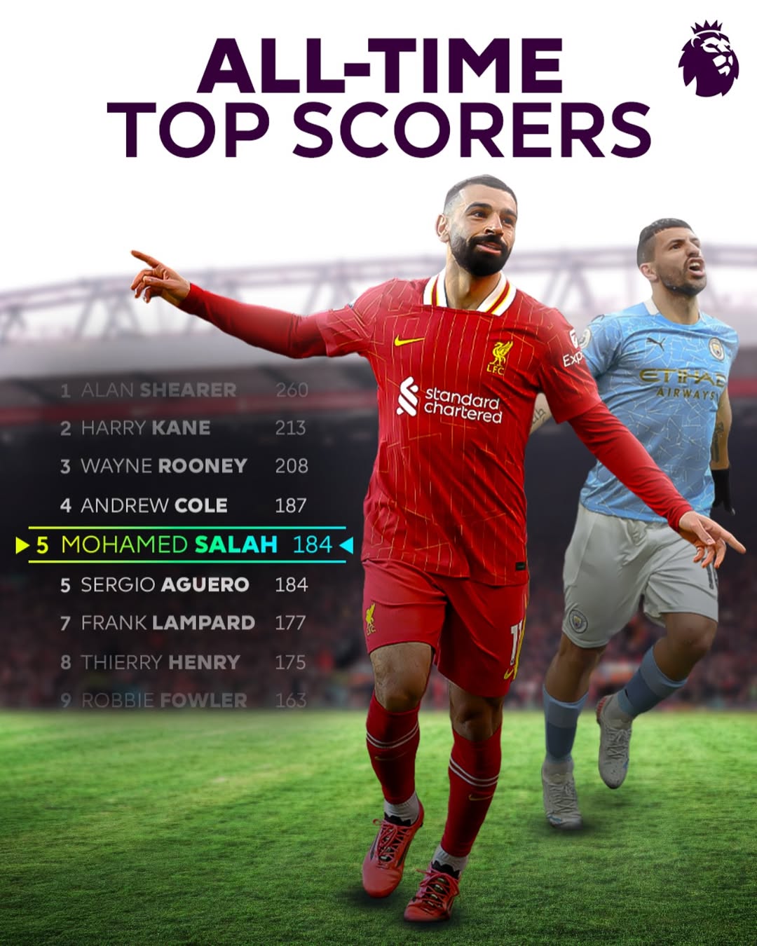 除特別注明外,本站所有內(nèi)容均為九球直播整理排版,轉(zhuǎn)載請注明出處:太逆天薩拉赫季前在英超歷史總射手榜10名開外,現(xiàn)已殺到第5