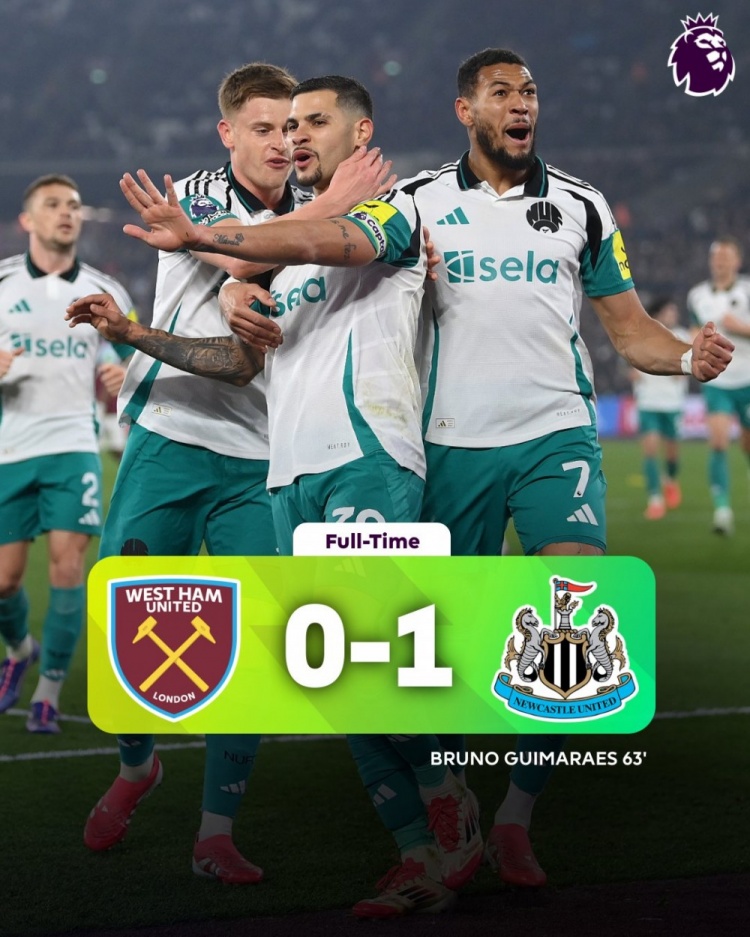 3月11日訊 今天凌晨英超第28輪最后一場比賽,西漢姆聯(lián)主場對陣紐卡。最終憑借著吉馬良斯的下半場致勝進球,紐卡斯爾客場1-0擊敗西漢姆聯(lián)。