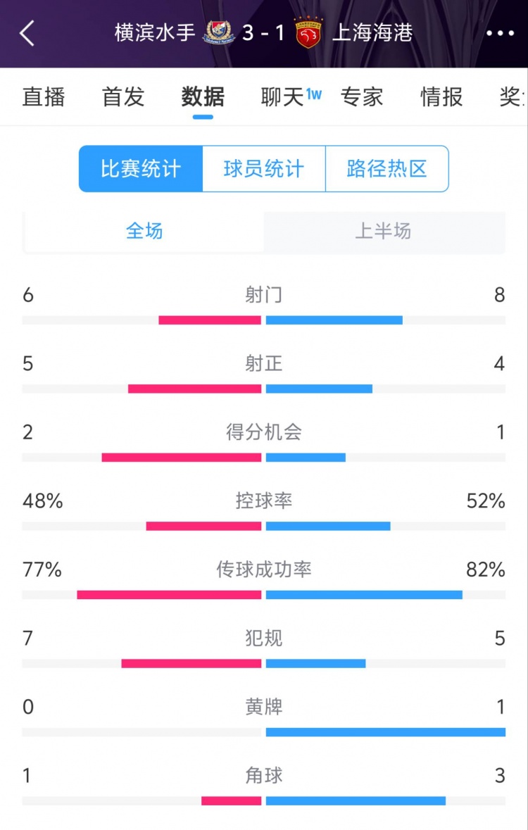 發(fā)布時(shí)間:2025年03月11日 19:50點(diǎn)擊:欄目:足球新聞 3月11日訊 半場(chǎng)結(jié)束,海港暫1-3落后&總比分1-4橫濱水手。半場(chǎng)數(shù)據(jù)方面,射門(mén)數(shù)海港8-6領(lǐng)先,射正4-5落后,控球率52%、傳球成功率82%均高于橫濱。 除特別注明外,本站所有內(nèi)容均為九球直播整理排版,轉(zhuǎn)載請(qǐng)注明出處:半場(chǎng)數(shù)據(jù):海港射門(mén)8-6領(lǐng)先&射正4-5 控球率傳球成功率均高于橫濱 本文標(biāo)簽: 足球 中超 中國(guó)足球 上海海港