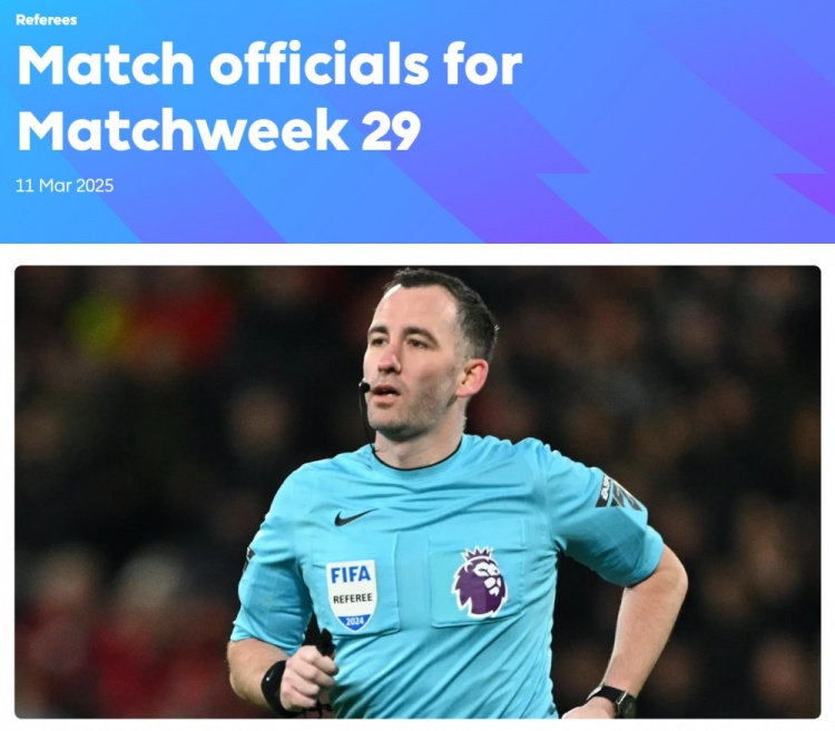3月11日訊 英超官方公布第29輪聯(lián)賽各場(chǎng)執(zhí)法裁判,克里斯-卡瓦納(上圖)執(zhí)法阿森納vs切爾西,西蒙-胡珀執(zhí)法曼城vs布萊頓。