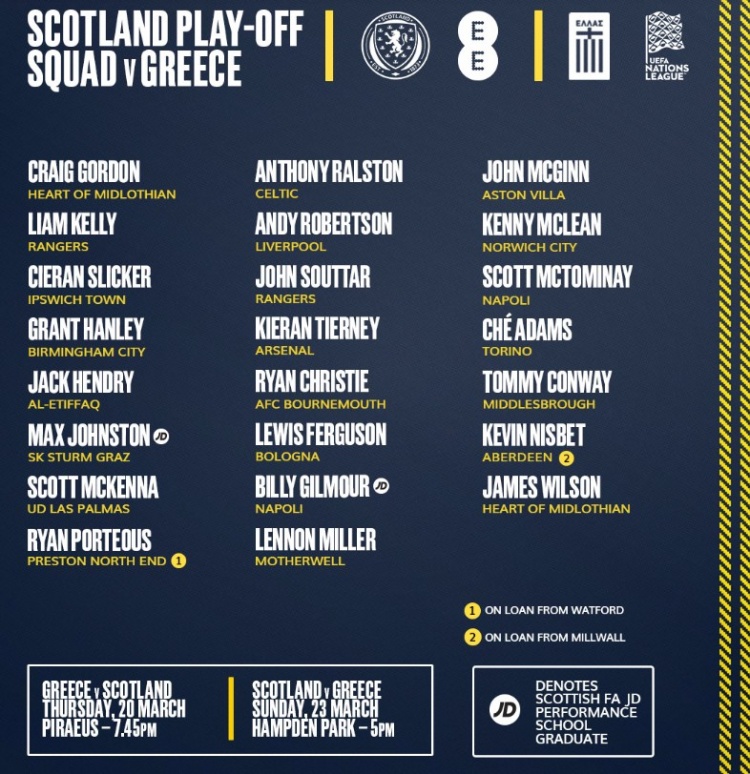 3月11日訊 即將到來的歐國(guó)聯(lián)A聯(lián)賽升級(jí)賽,蘇格蘭將和希臘進(jìn)行兩回合的比賽。目前,蘇格蘭已經(jīng)公布了大名單,羅伯遜、麥克托米奈領(lǐng)銜,蒂爾尼在列。