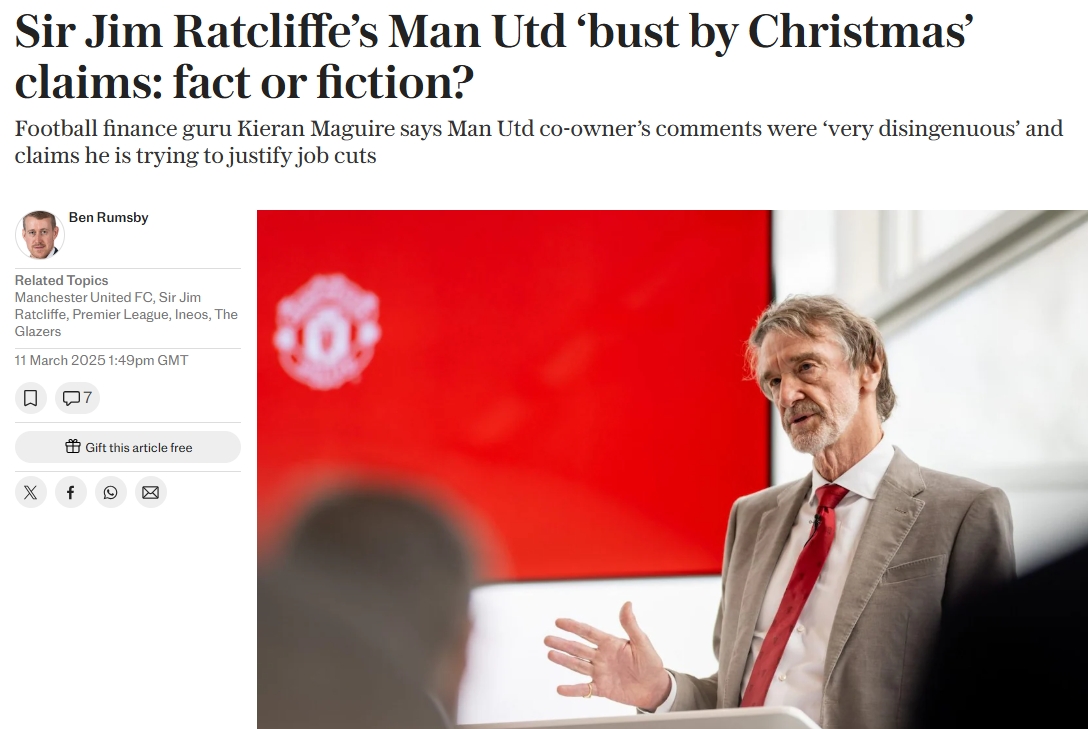 針對拉特克利夫聲稱仍需支付前任管理層遺留的轉會費分期,馬奎爾反駁道:“所有俱樂部都是通過信貸方式引進球員,曼聯(lián)在這方面并不特殊。他們的負債遠低于切爾西,但切爾西并未因此裁減400個崗位。"