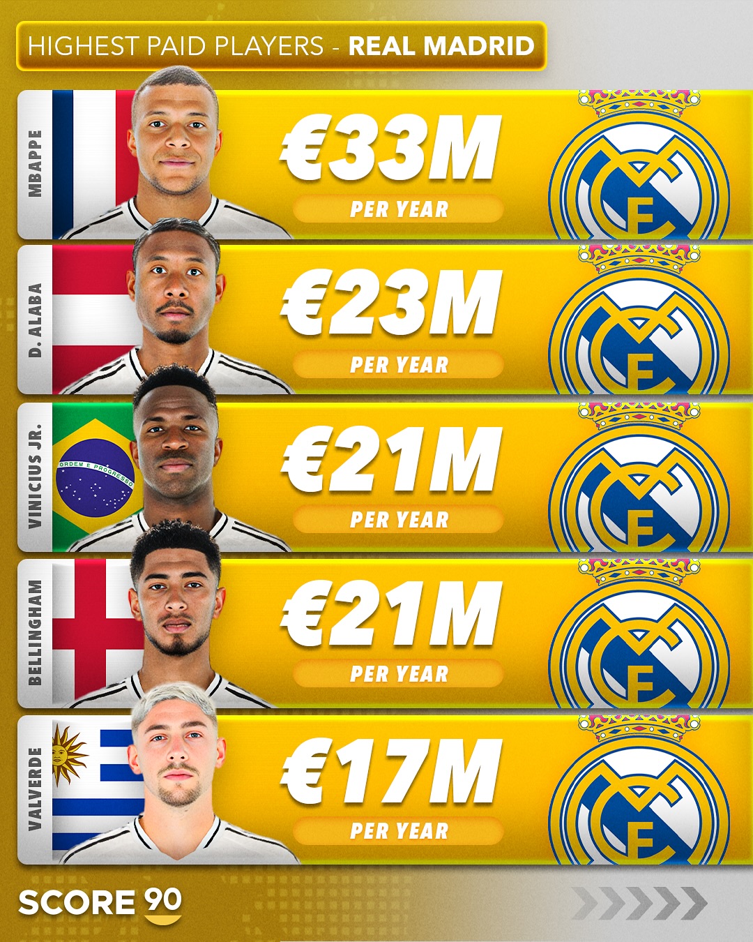 發(fā)布時(shí)間:2025年03月11日 23:50點(diǎn)擊:欄目:足球新聞 皇馬隊(duì)內(nèi)年薪前五:(單位/歐元)1-姆巴佩,3300萬2-阿拉巴,2300萬3-維尼修斯,2100萬4-貝林厄姆,2100萬5-巴爾韋德,1700萬 除特別注明外,本站所有內(nèi)容均為九球直播整理排版,轉(zhuǎn)載請(qǐng)注明出處:皇馬年薪前5:姆總3300萬第1 阿拉巴2300萬 維尼修斯&貝林2100萬 本文標(biāo)簽: 足球 西甲 皇家馬德里 姆巴佩 貝林厄姆