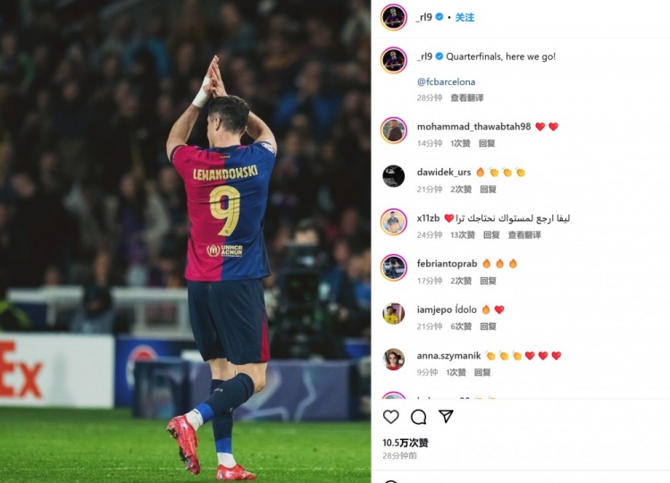 他也在賽后通過(guò)社媒曬出自己的比賽照,并配文:“歐冠八強(qiáng)戰(zhàn),我們來(lái)了!@巴薩俱樂(lè)部”。