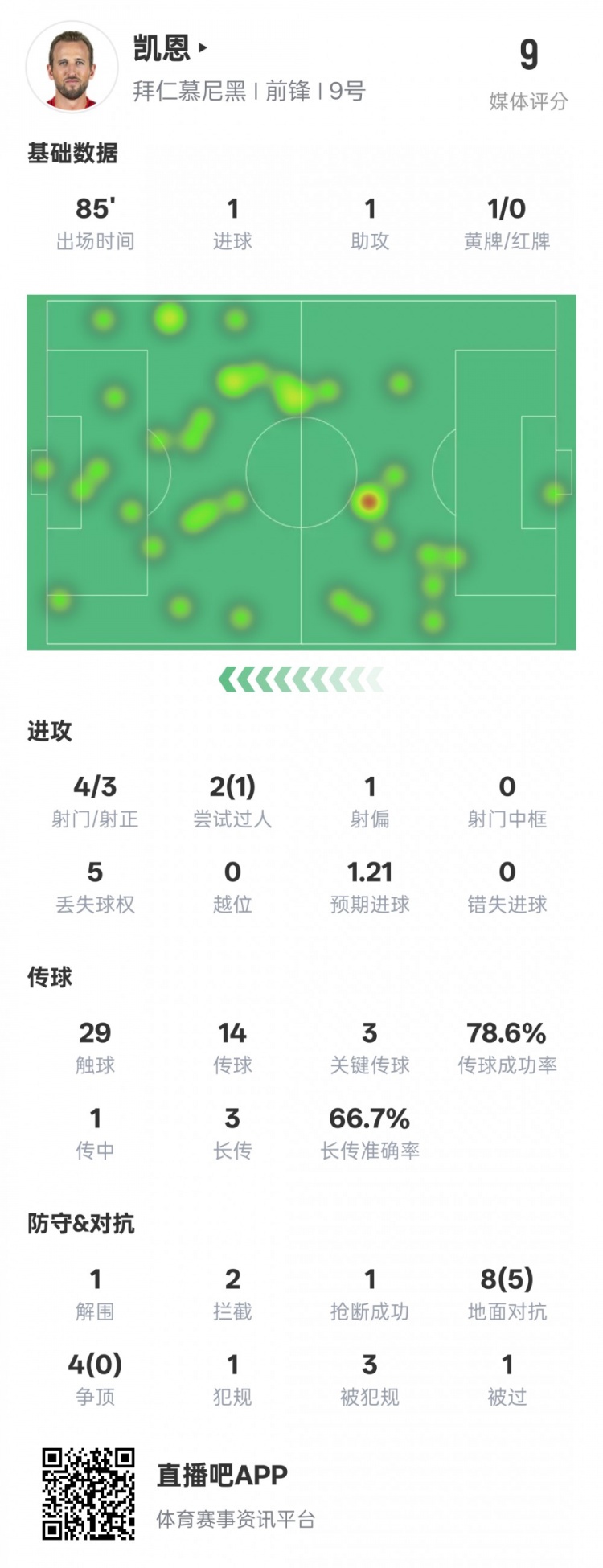 除特別注明外,本站所有內(nèi)容均為九球直播整理排版,轉(zhuǎn)載請注明出處:凱恩本場數(shù)據(jù):傳射建功+3關(guān)鍵傳球1過人成功,評分9.0