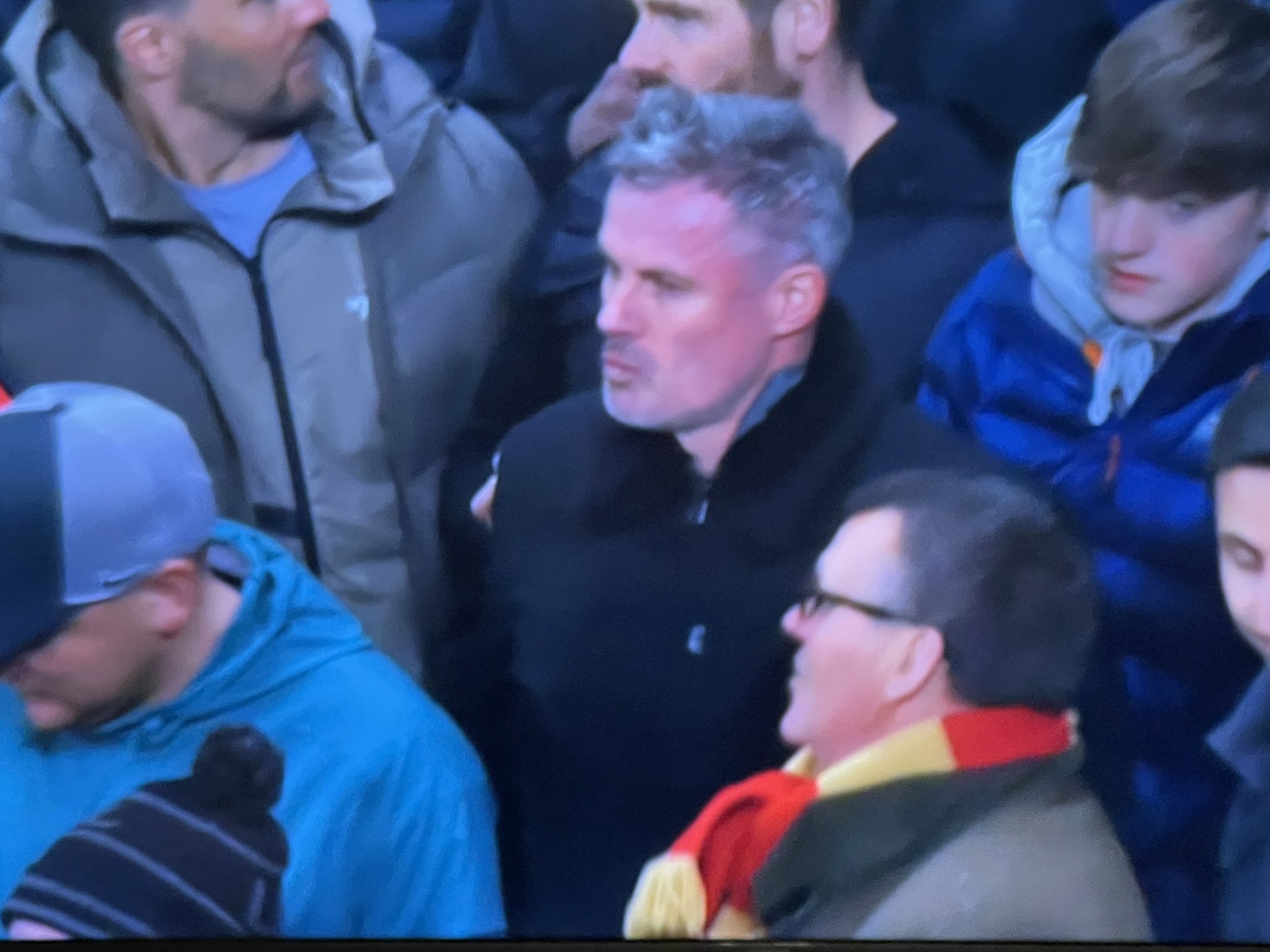 3月12日訊 《每日郵報》報道,卡拉格在KOP看臺目睹利物浦出局,被轉播鏡頭拍到表情嚴峻。
