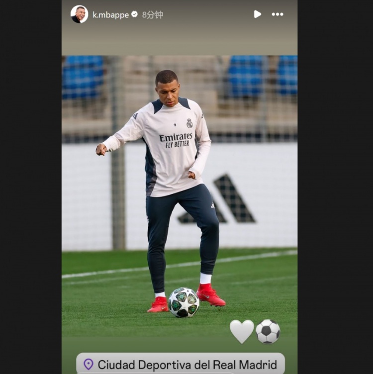 有關他能否首發(fā)甚至出戰(zhàn)本場比賽的消息也一時間甚囂塵上,姆巴佩在剛才通過社媒曬出了自己的有球訓練照,定位正是皇馬體育城。