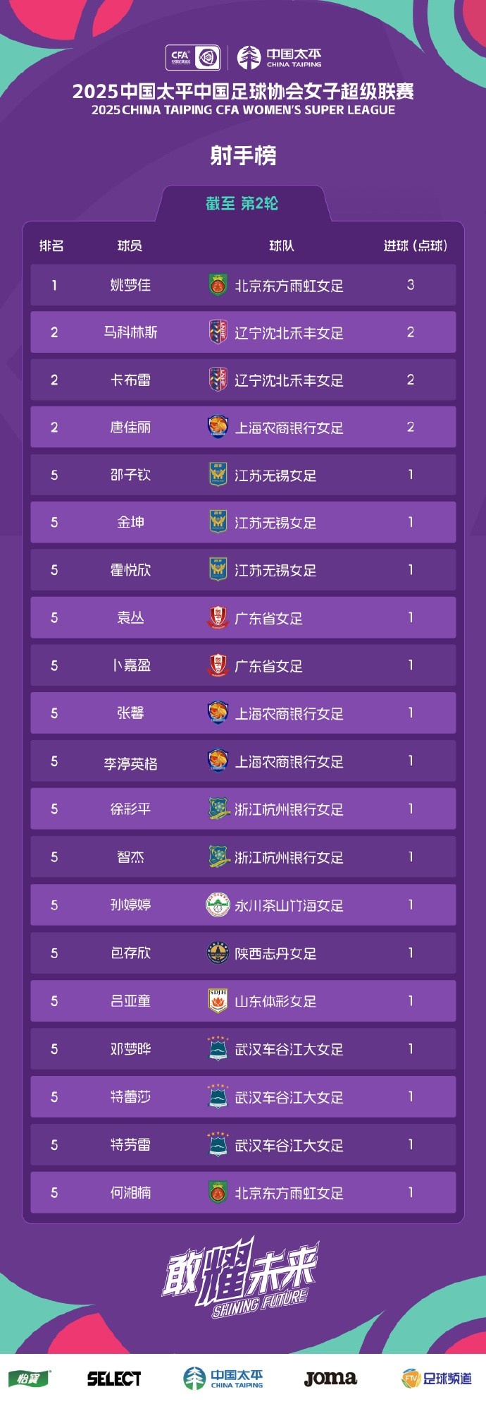 發(fā)布時(shí)間:2025年03月12日 21:50點(diǎn)擊:欄目:足球新聞 2025中國太平女超聯(lián)賽第2輪射手榜 ??? 除特別注明外,本站所有內(nèi)容均為九球直播整理排版,轉(zhuǎn)載請注明出處:女超聯(lián)賽第2輪射手榜 本文標(biāo)簽: 足球 轉(zhuǎn)載