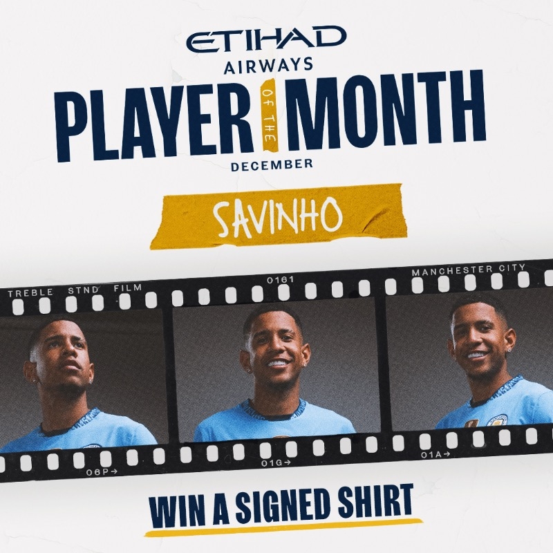 曼城官方:薩維尼奧當(dāng)選12月隊(duì)內(nèi)最佳球員