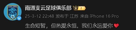 發(fā)布時(shí)間:2025年03月12日 23:50點(diǎn)擊:欄目:足球新聞 3月12日訊 成都蓉城官方發(fā)布訃告,身患重癥的成都蓉城小球迷林子金不幸去世。南通支云俱樂部社媒發(fā)文悼念:生命短暫,但熱愛永恒。我們永遠(yuǎn)愛你?? 除特別注明外,本站所有內(nèi)容均為九球直播整理排版,轉(zhuǎn)載請(qǐng)注明出處:南通支云社媒悼念蓉城小球迷:生命短暫但熱愛永恒,永遠(yuǎn)愛你?? 本文標(biāo)簽: 足球 中國(guó)足球 中超 成都蓉城 中甲 南通支云