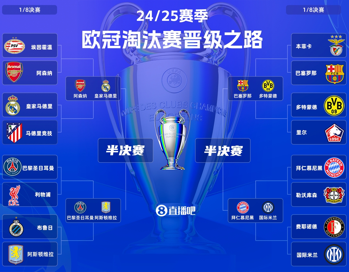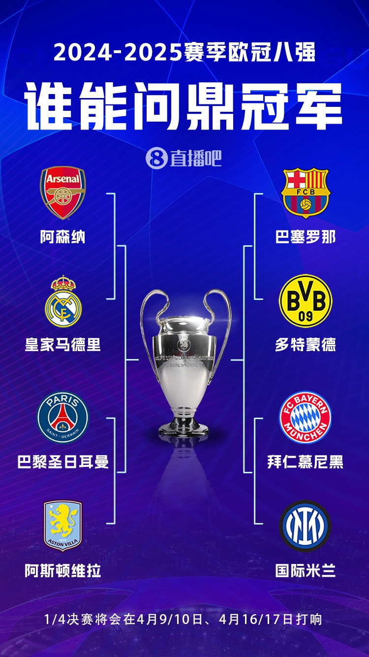 北京時(shí)間3月13日,歐冠1/8決賽次回合比賽全部結(jié)束。2024/2025賽季歐冠8強(qiáng)正式出爐,分別是:巴塞羅那、國際米蘭、拜仁慕尼黑、巴黎圣日耳曼、多特蒙德、阿森納、阿斯頓維拉、皇家馬德里。那么各位吧友覺得哪支球隊(duì)能夠最終問鼎冠軍呢?八選一,你會(huì)選誰?