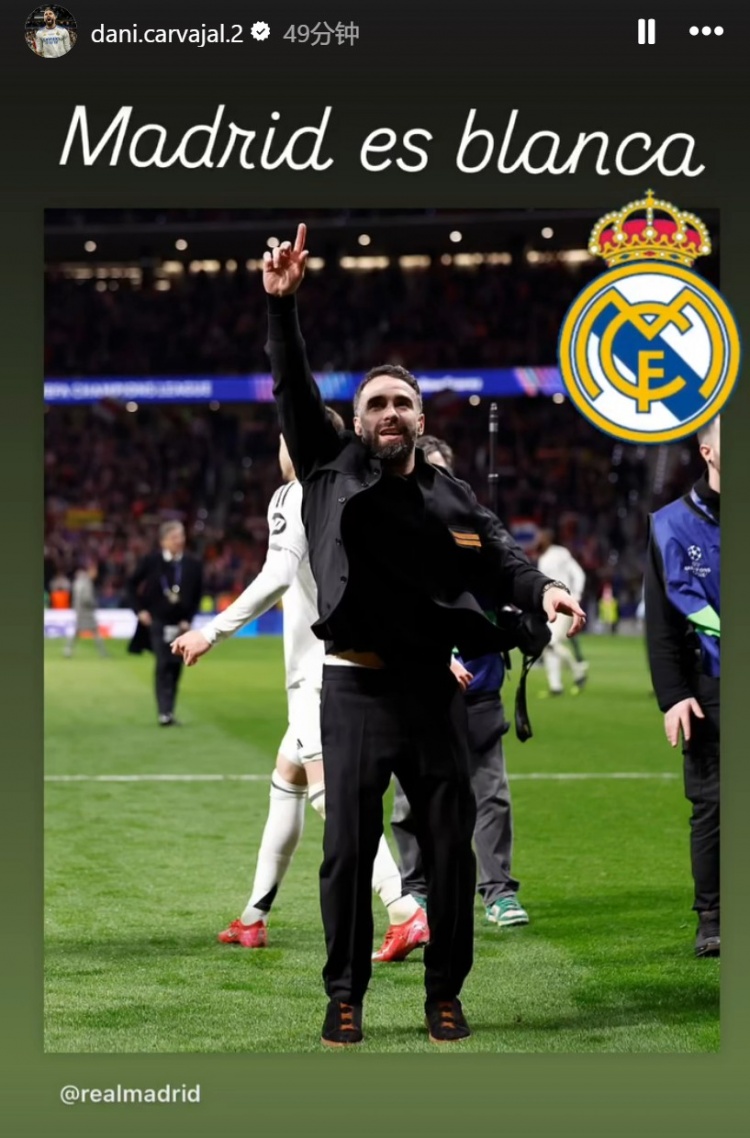 賽后目前還在養(yǎng)傷階段的卡瓦哈爾也進(jìn)入球場與隊(duì)友一同慶祝勝利,他在社媒曬出照片并配文寫道:“馬德里是白色的!”